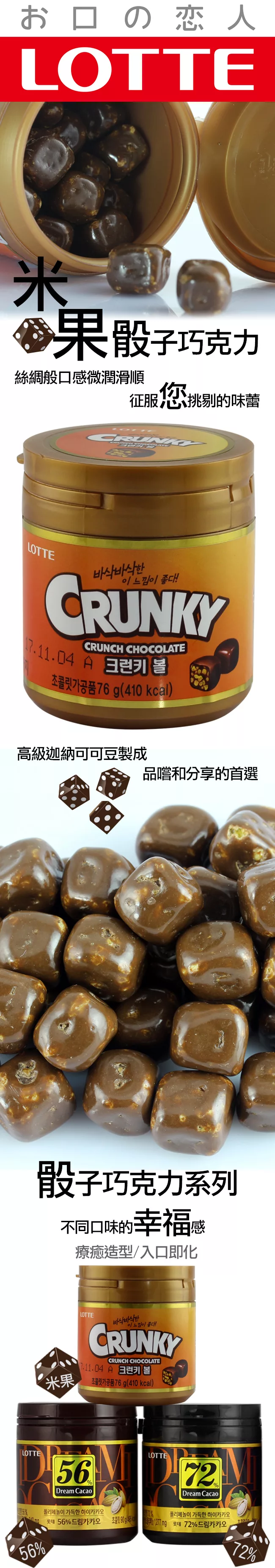 【LOTTE樂天】Dream夢幻骰子巧克力3入組-CRUNKY米果(76g-3)